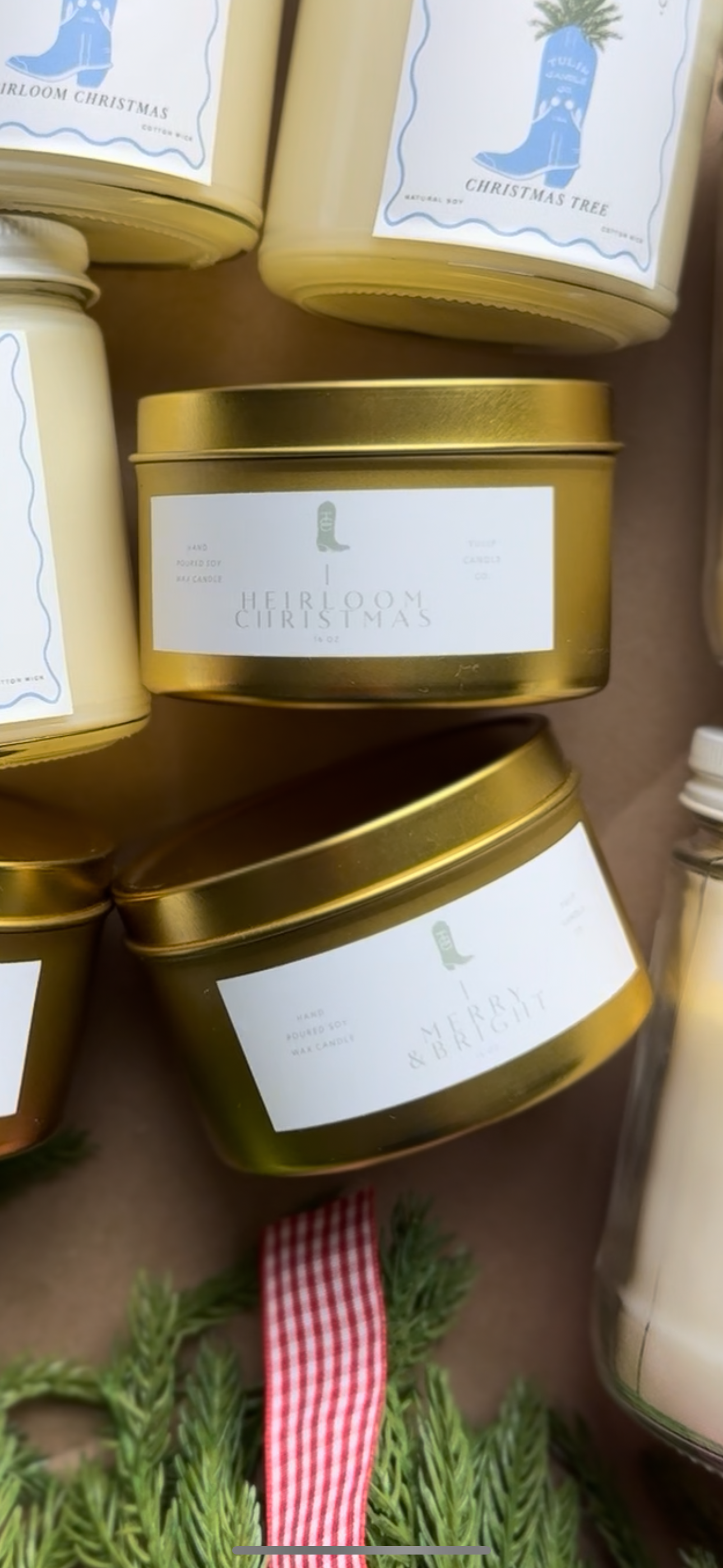 This is a listing for an 14 oz. Merry and Bright tin candle.