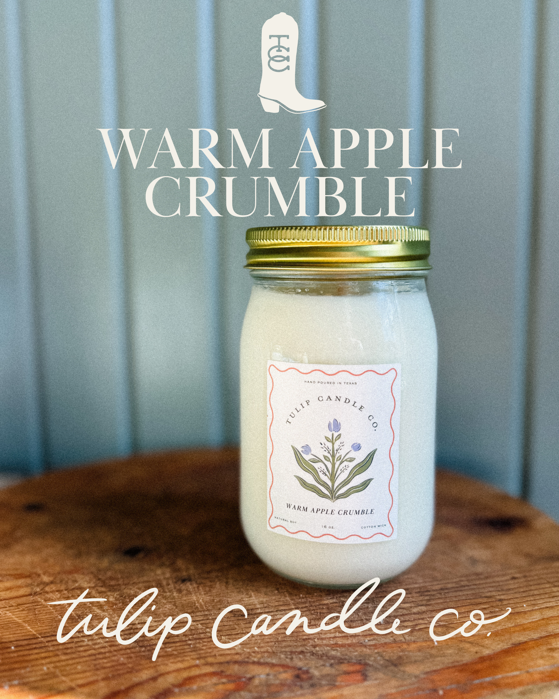 Tulip Candle Company candles are handcrafted in Texas using 100% natural soy wax, cotton wicks and quality fragrances that are paraben and phthalate free.